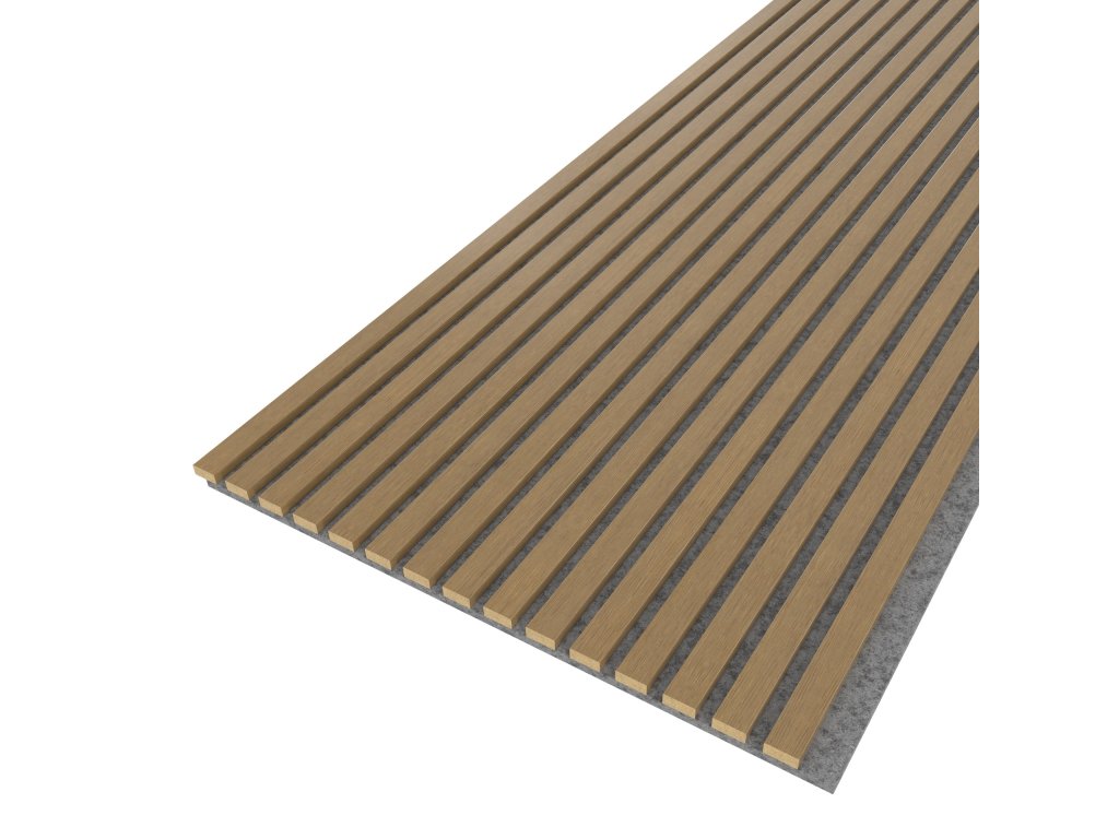 AKUSTICKÁ VARIANTA! Akustický obkladový panel je moderním a efektivním řešením pro zlepšení akustického komfortu v různých interiérech. Tento produkt je navržen s důrazem na estetiku a funkčnost, což ho činí ideální volbou pro jakékoli prostředí, kde je potřeba omezit nepříjemné ozvěny a hluk. Panel je vyráběn přímo v ČR z kvalitních materiálů, které zlepšují akustiku místnosti, ale také dodávají prostoru sofistikovaný vzhled. Akustické panely WALL Concept jsou vyrobeny z MDF jádra a potaženy designovou fólií s dřevěným dekorem - ten je sladěn s dekorem SPC podlahy nebo soklové, přechodové nebo schodové lišty ACARA. MDF latě jsou připevněny k podkladové šedé filcové vrstvě. Celý panel je tak lehký a přitom odolný. Panely nabízíme ve dvou šířkách - 30 cm a 60 cm. Lze je libovolně formátovat na požadované rozměry - buď pomocí řezacího nože nebo nářadí na řezání dřeva. Lze tak snadno obložit i tvarově atypické prostory včetně výklenků, vchodů a dalších míst. Konkrétně tento model má šířku 60 cm a je v dekoru Dub eterna - více v technických parametrech. Přednosti panelů WALL Concept Jednou z hlavních výhod tohoto akustického obkladového panelu je jeho schopnost redukovat nepříjemný hluk a ozvěny, což vytváří příjemné a tiché prostředí pro práci, relaxaci nebo komunikaci. Panel je vhodný do kanceláří, konferenčních místností, obývacích pokojů, restaurací a mnoha dalších prostor, kde je klid a pohodlí důležité. Díky svému elegantnímu designu a různým dostupným barvám lze tento obkladový panel snadno integrovat do různých designových konceptů a stylů. Panel je navržen tak, aby byl odolný a dlouhodobě funkční, což z něj činí investici do lepšího akustického prostředí, která vám poskytne mnoho let. Celkově lze říci, že akustický obkladový panel je efektivním a atraktivním řešením pro zlepšení akustiky v interiéru, který zároveň přidává estetickou hodnotu do vašeho prostoru. Snadná montáž Montáž tohoto akustického panelu je rychlá a snadná, což umožňuje jednoduchou instalaci na stěny a stropy. Lze jej na stěnu připevnit pomocí 14 dodávaných vrutů a hmoždinek nebo jej snadno instalujete pomocí Dr. MAXX- univerzálnímu montážnímu tmelu nové generace. Dokonalý design v celé místnosti Dekory používané u akustických panelů WALL Concept jsou sladěné s vinylovými podlahami SPC Floor Concept a lištami ACARA. Můžete tak designově sladit podlahy i stěny interiéru pro dokonalý vizuální výsledek. Vyberte si odpovídající design z SPC podlah nebo lišt ACARA: Podlahy SPC Floor Concept Soklové lišty ACARA Přechodové lišty ACARA Schodové lišty ACARADoplňkové parametry