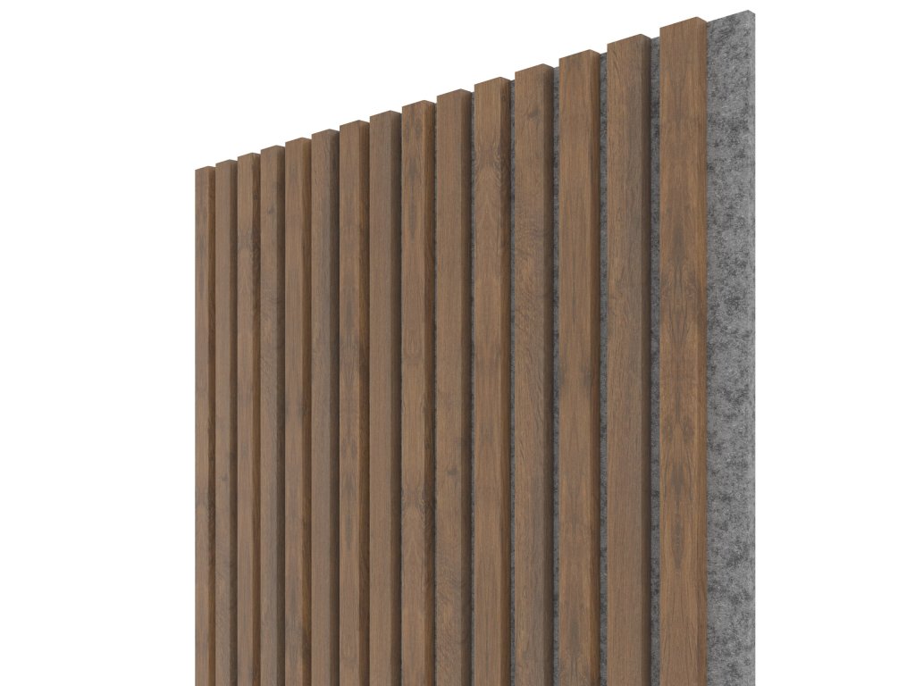 AKUSTICKÁ VARIANTA! Akustický obkladový panel je moderním a efektivním řešením pro zlepšení akustického komfortu v různých interiérech. Tento produkt je navržen s důrazem na estetiku a funkčnost, což ho činí ideální volbou pro jakékoli prostředí, kde je potřeba omezit nepříjemné ozvěny a hluk. Panel je vyráběn přímo v ČR z kvalitních materiálů, které zlepšují akustiku místnosti, ale také dodávají prostoru sofistikovaný vzhled. Akustické panely WALL Concept jsou vyrobeny z MDF jádra a potaženy designovou fólií s dřevěným dekorem - ten je sladěn s dekorem SPC podlahy nebo soklové, přechodové nebo schodové lišty ACARA. MDF latě jsou připevněny k podkladové šedé filcové vrstvě. Celý panel je tak lehký a přitom odolný. Panely nabízíme ve dvou šířkách - 30 cm a 60 cm. Lze je libovolně formátovat na požadované rozměry - buď pomocí řezacího nože nebo nářadí na řezání dřeva. Lze tak snadno obložit i tvarově atypické prostory včetně výklenků, vchodů a dalších míst. Konkrétně tento model má šířku 60 cm a je v dekoru Dub Livingstone tabákový - více v technických parametrech. Přednosti panelů WALL Concept Jednou z hlavních výhod tohoto akustického obkladového panelu je jeho schopnost redukovat nepříjemný hluk a ozvěny, což vytváří příjemné a tiché prostředí pro práci, relaxaci nebo komunikaci. Panel je vhodný do kanceláří, konferenčních místností, obývacích pokojů, restaurací a mnoha dalších prostor, kde je klid a pohodlí důležité. Díky svému elegantnímu designu a různým dostupným barvám lze tento obkladový panel snadno integrovat do různých designových konceptů a stylů. Panel je navržen tak, aby byl odolný a dlouhodobě funkční, což z něj činí investici do lepšího akustického prostředí, která vám poskytne mnoho let. Celkově lze říci, že akustický obkladový panel je efektivním a atraktivním řešením pro zlepšení akustiky v interiéru, který zároveň přidává estetickou hodnotu do vašeho prostoru. Snadná montáž Montáž tohoto akustického panelu je rychlá a snadná, což umožňuje jednoduchou instalaci na stěny a stropy. Lze jej na stěnu připevnit pomocí 14 dodávaných vrutů a hmoždinek nebo jej snadno instalujete pomocí Dr. MAXX- univerzálnímu montážnímu tmelu nové generace. Dokonalý design v celé místnosti Dekory používané u akustických panelů WALL Concept jsou sladěné s vinylovými podlahami SPC Floor Concept a lištami ACARA. Můžete tak designově sladit podlahy i stěny interiéru pro dokonalý vizuální výsledek. Vyberte si odpovídající design z SPC podlah nebo lišt ACARA: Podlahy SPC Floor Concept Soklové lišty ACARA Přechodové lišty ACARA Schodové lišty ACARADoplňkové parametry