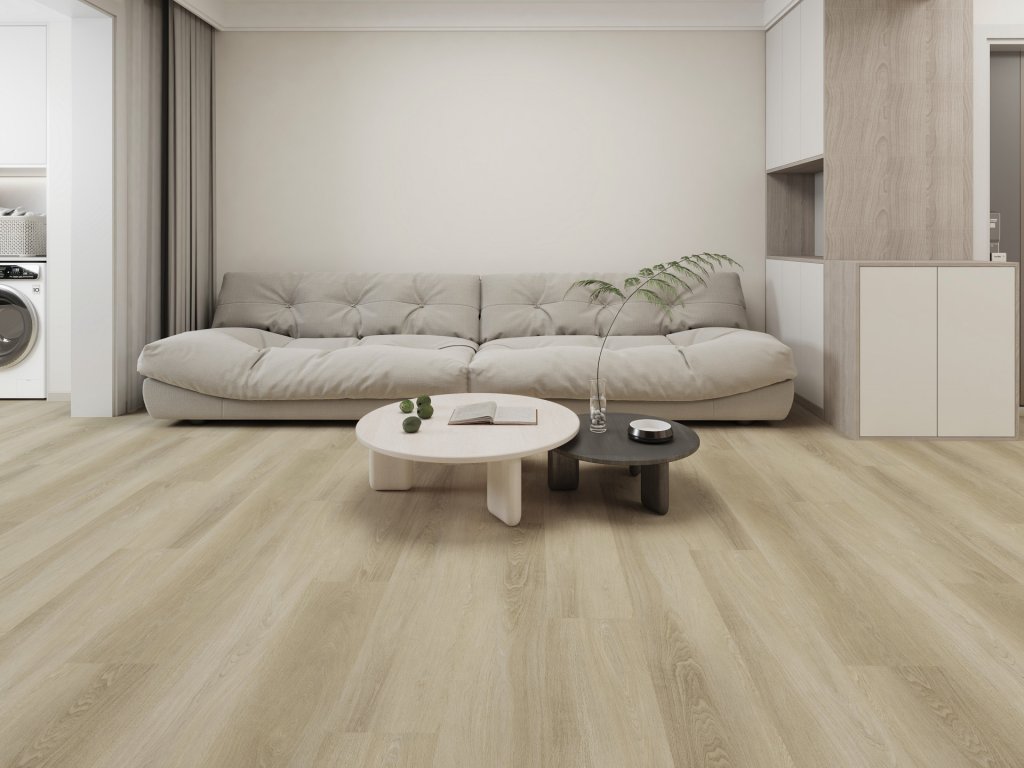 Vinylová podlaha v dekoru Latte těží ze své autentické kresby dřeva a špičkových vlastností řady Rigid SPC. Stabilní jádro ze směsi kamenného prášku zajišťuje, že se podlaha nekroutí ani u velkých prosklených ploch.