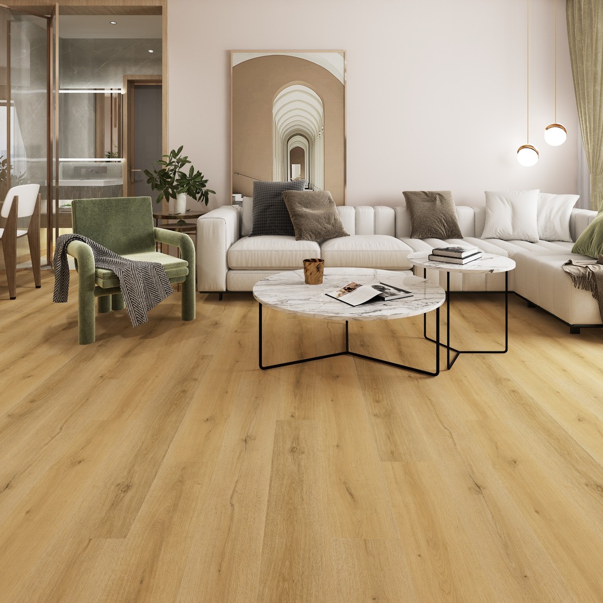 SPC kompozitní jádro je stabilní, odolné proti vlhkosti a kompatibilní s podlahovým topením.