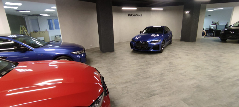 Hledáte podlahu, která přežije všechno? Tato realizace v dekoru Grey dokazuje, že moderní SPC vinyl patří i do těch nejnáročnějších prostor, jako jsou showroomy nebo garážové plochy.