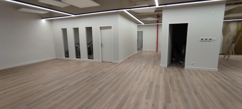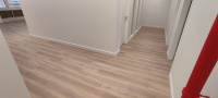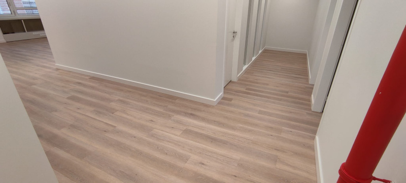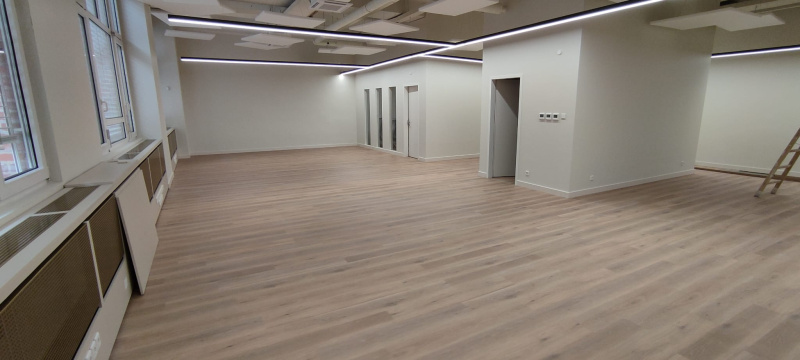 Pro tento projekt byl klíčový výběr SPC vinylu s rigidním jádrem. Ve velkých otevřených prostorech dochází k výraznému namáhání, a proto jsme vsadili na materiál s vysokou tvarovou stabilitou, který se nekroutí ani při změnách teploty. Dekor Latte prostor opticky propojil a díky integrované podložce jsme dosáhli výrazného útlumu hluku, což je v openspace prostředí naprostá nezbytnost.