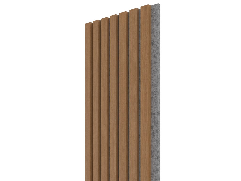 VZOREK akustického panelu! Rozměr vzorku je 24x13,5 cm. Popis panelu Akustický obkladový panel je moderním a efektivním řešením pro zlepšení akustického komfortu v různých interiérech. Tento produkt je navržen s důrazem na estetiku a funkčnost, což ho činí ideální volbou pro jakékoli prostředí, kde je potřeba omezit nepříjemné ozvěny a hluk. Panel je vyráběn přímo v ČR z kvalitních materiálů, které zlepšují akustiku místnosti, ale také dodávají prostoru sofistikovaný vzhled. Akustické panely WALL Concept jsou vyrobeny z MDF jádra a potaženy designovou fólií s dřevěným dekorem - ten je sladěn s dekorem SPC podlahy nebo soklové, přechodové nebo schodové lišty ACARA. MDF latě jsou připevněny k podkladové šedé filcové vrstvě. Celý panel je tak lehký a přitom odolný. Panely nabízíme ve dvou šířkách - 30 cm a 60 cm. Lze je libovolně formátovat na požadované rozměry - buď pomocí řezacího nože nebo nářadí na řezání dřeva. Lze tak snadno obložit i tvarově atypické prostory včetně výklenků, vchodů a dalších míst. Přednosti panelů WALL Concept Jednou z hlavních výhod tohoto akustického obkladového panelu je jeho schopnost redukovat nepříjemný hluk a ozvěny, což vytváří příjemné a tiché prostředí pro práci, relaxaci nebo komunikaci. Panel je vhodný do kanceláří, konferenčních místností, obývacích pokojů, restaurací a mnoha dalších prostor, kde je klid a pohodlí důležité. Díky svému elegantnímu designu a různým dostupným barvám lze tento obkladový panel snadno integrovat do různých designových konceptů a stylů. Panel je navržen tak, aby byl odolný a dlouhodobě funkční, což z něj činí investici do lepšího akustického prostředí, která vám poskytne mnoho let. Celkově lze říci, že akustický obkladový panel je efektivním a atraktivním řešením pro zlepšení akustiky v interiéru, který zároveň přidává estetickou hodnotu do vašeho prostoru. Snadná montáž Montáž tohoto akustického panelu je rychlá a snadná, což umožňuje jednoduchou instalaci na stěny a stropy. Lze jej na stěnu připevnit pomocí 14 dodávaných vrutů a hmoždinek nebo jej snadno instalujete pomocí Dr. MAXX- univerzálnímu montážnímu tmelu nové generace. Dokonalý design v celé místnosti Dekory používané u akustických panelů WALL Concept jsou sladěné s vinylovými podlahami SPC Floor Concept a lištami ACARA. Můžete tak designově sladit podlahy i stěny interiéru pro dokonalý vizuální výsledek. Vyberte si odpovídající design z SPC podlah nebo lišt ACARA: Podlahy SPC Floor Concept Soklové lišty ACARA Přechodové lišty ACARA Schodové lišty ACARADoplňkové parametry